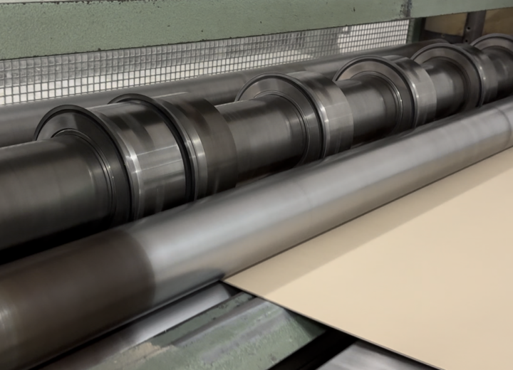 Después de formatear las hojas de cartón compacto, llevamos a cabo un fresado preciso que consiste en realizar cortes controlados en la superficie del cartón.
